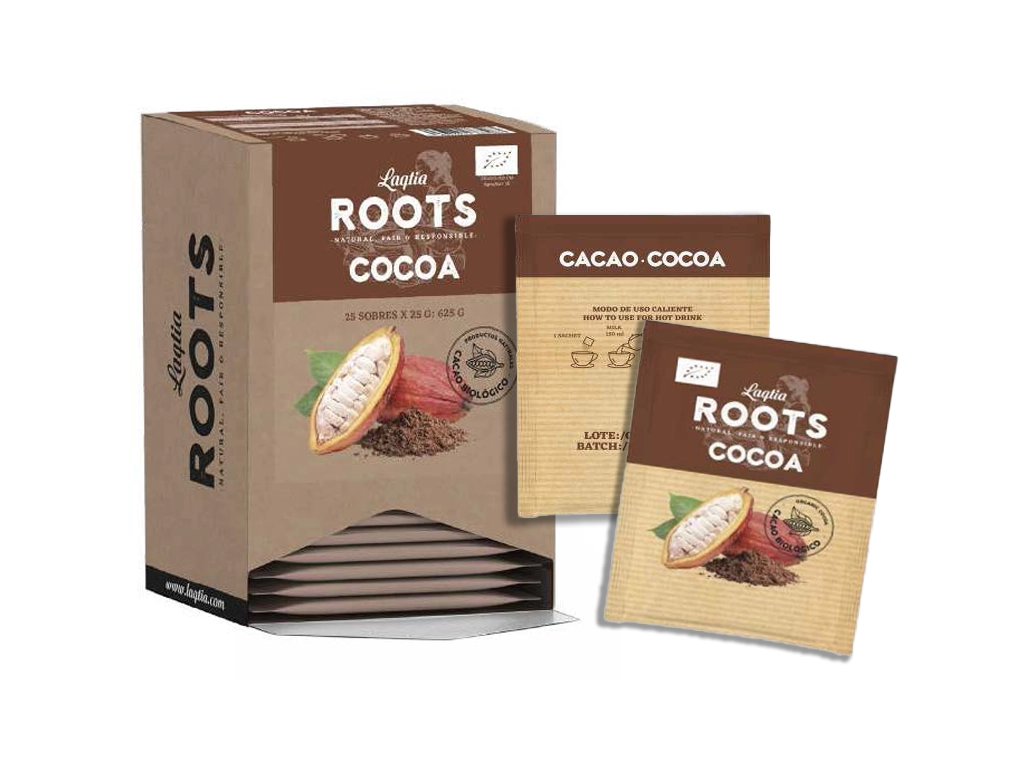 Nuestro Cacao BIO Laqtia Roots también está disponible en sobres monodosis, perfectos para su consumo en cualquier momento y lugar.
